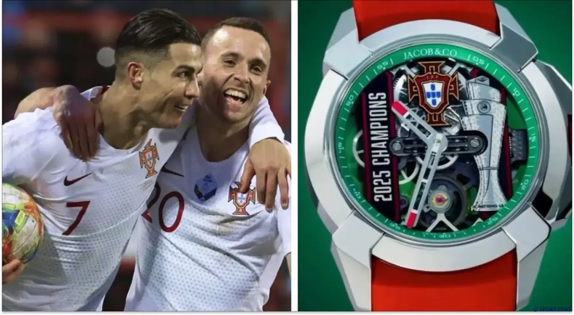 Криштиану Роналду сделал роскошный подарок своим партнёрам по сборной Португалии — в честь победы в Лиге наций он преподнёс каждому футболисту персонализированные часы Jacob & Co. По сообщениям СМИ, стоимость каждого экземпляра составляет от 280 до 400 тысяч долларов.