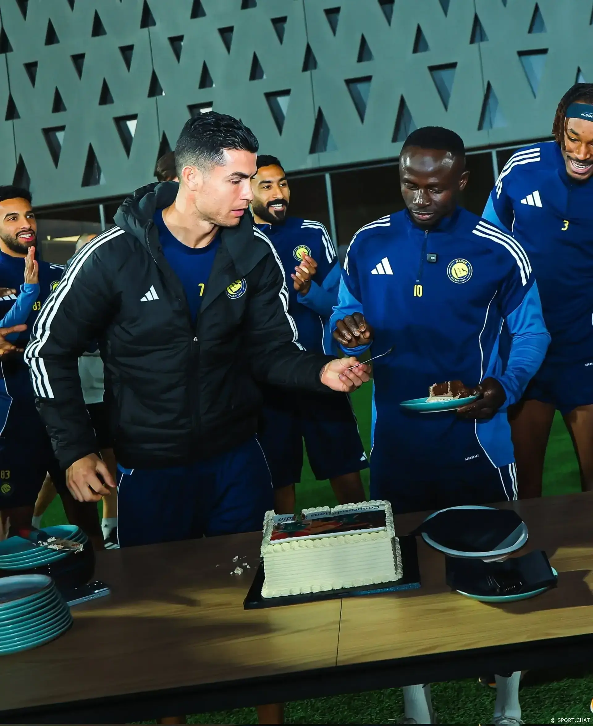Чемпионское возвращение не осталось без внимания: в праздновании участвовала вся команда, а главным действующим лицом стал капитан клуба Криштиану Роналду. Португалец лично поздравил Мане и вручил ему торт в честь завоёванного трофея.